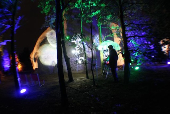 Das letzte Wochenende: eine den Raum noch einmal komplett verwandelnde Video-Installation von Rosh Zeeba, Jazz-Live-Musik mit Das Behälter, vorher ein letztes Mal Santa Barbara im Turm, dann Regen. Nun Leerstand leeren, dann Weihnachten, dann ausruhen.