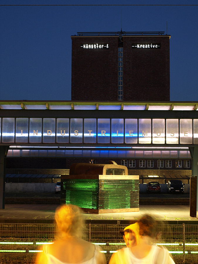 Im Rahmen eines Workshops in Berlin wurden die Lounge, das Podium für die Oberhausener Kurzfilmfestspiele und der neue Ausstellungsraum im Hauptbahnhof zusammen mit Architekturstudenten der TU Berlin gestaltet. Die Fenster unter dem Turmdach zeigten Videoarbeiten von Silvertree Köln.