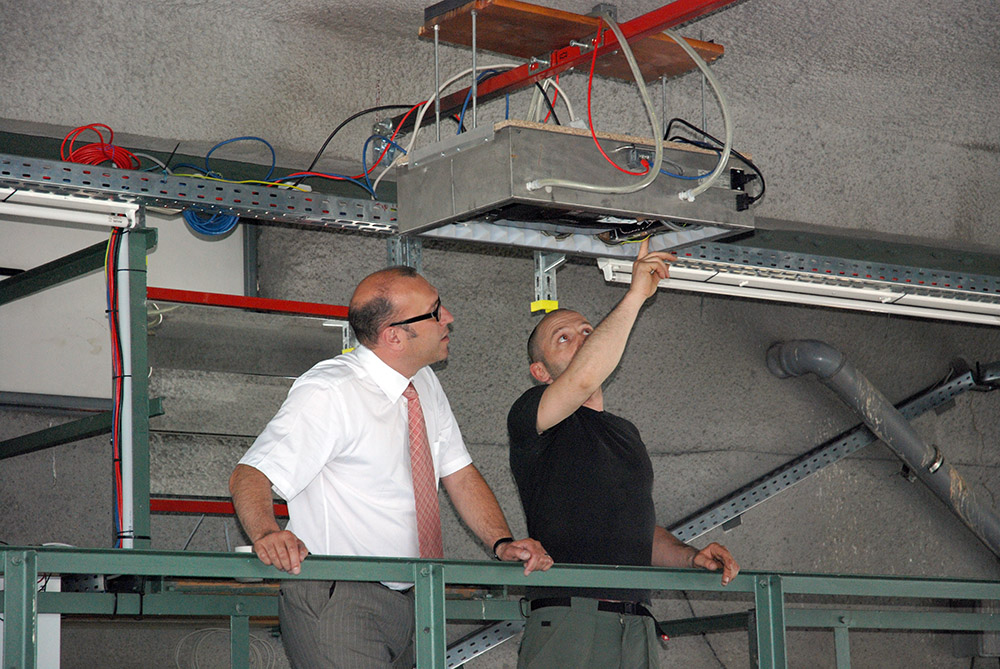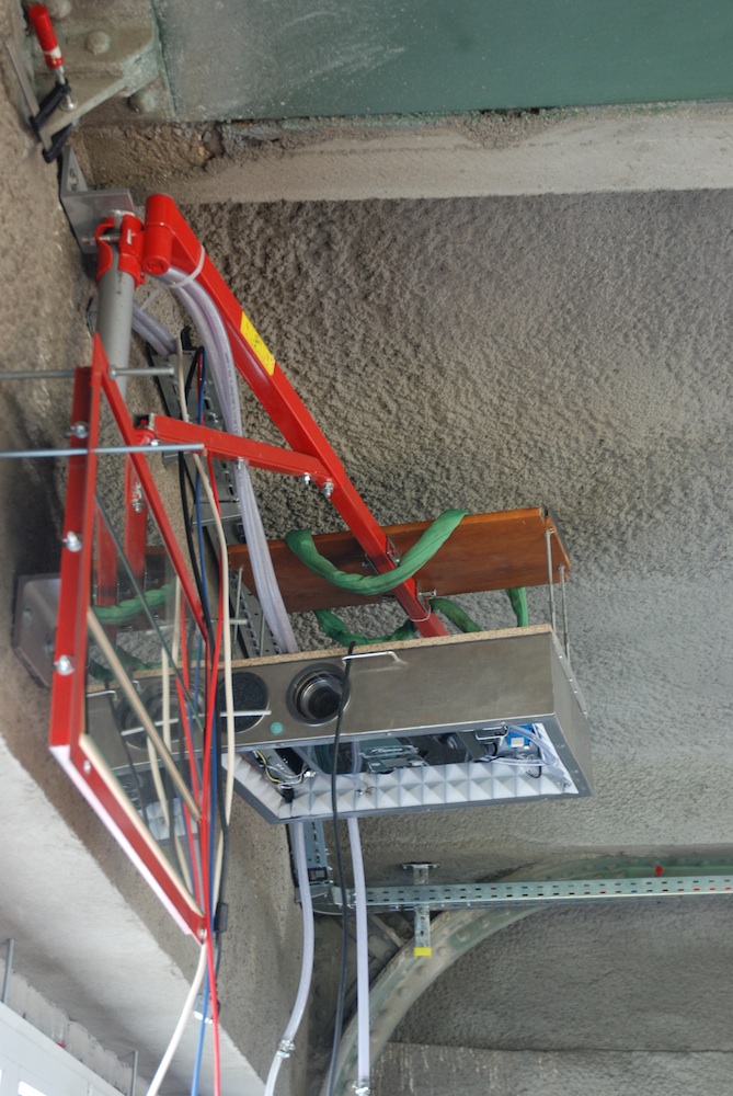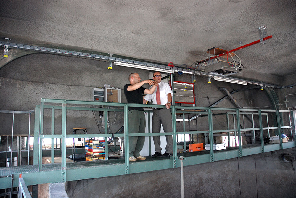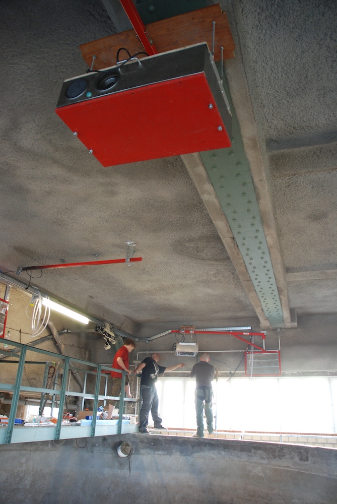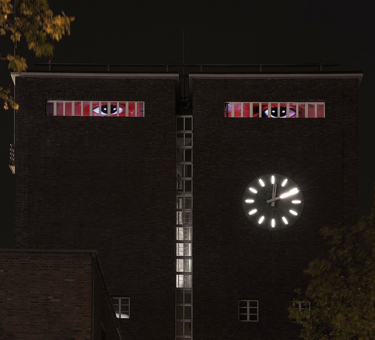 Videoinstallation von Ateliers Stark Berlin, Silvertree komplexe audiovision und Artronis Visual; entsprechend dem künstlerischen Konzept wird die umlaufende Fensterreihe unter dem Dach als Projektionsfläche für eine durch den LVR finanzierte Videoinstallation dauerhaft genutzt.