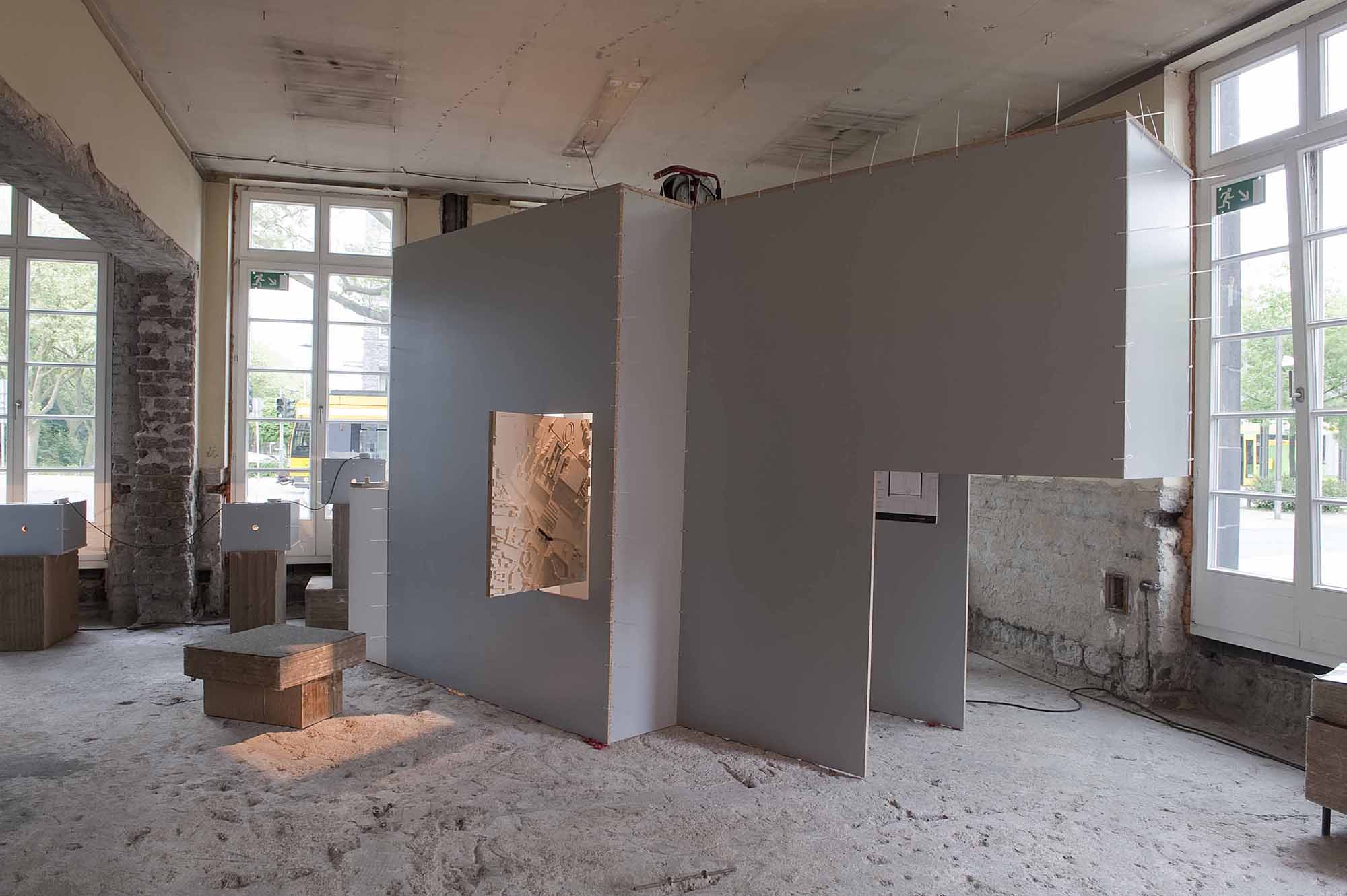 In der Ausstellung wurden Arbeiten von Architekturstudenten gezeigt mit dem Thema Oberhausen 1zu1. Es waren zuvor verwirklichte räumliche Interventionen rund um den Bahnhof.