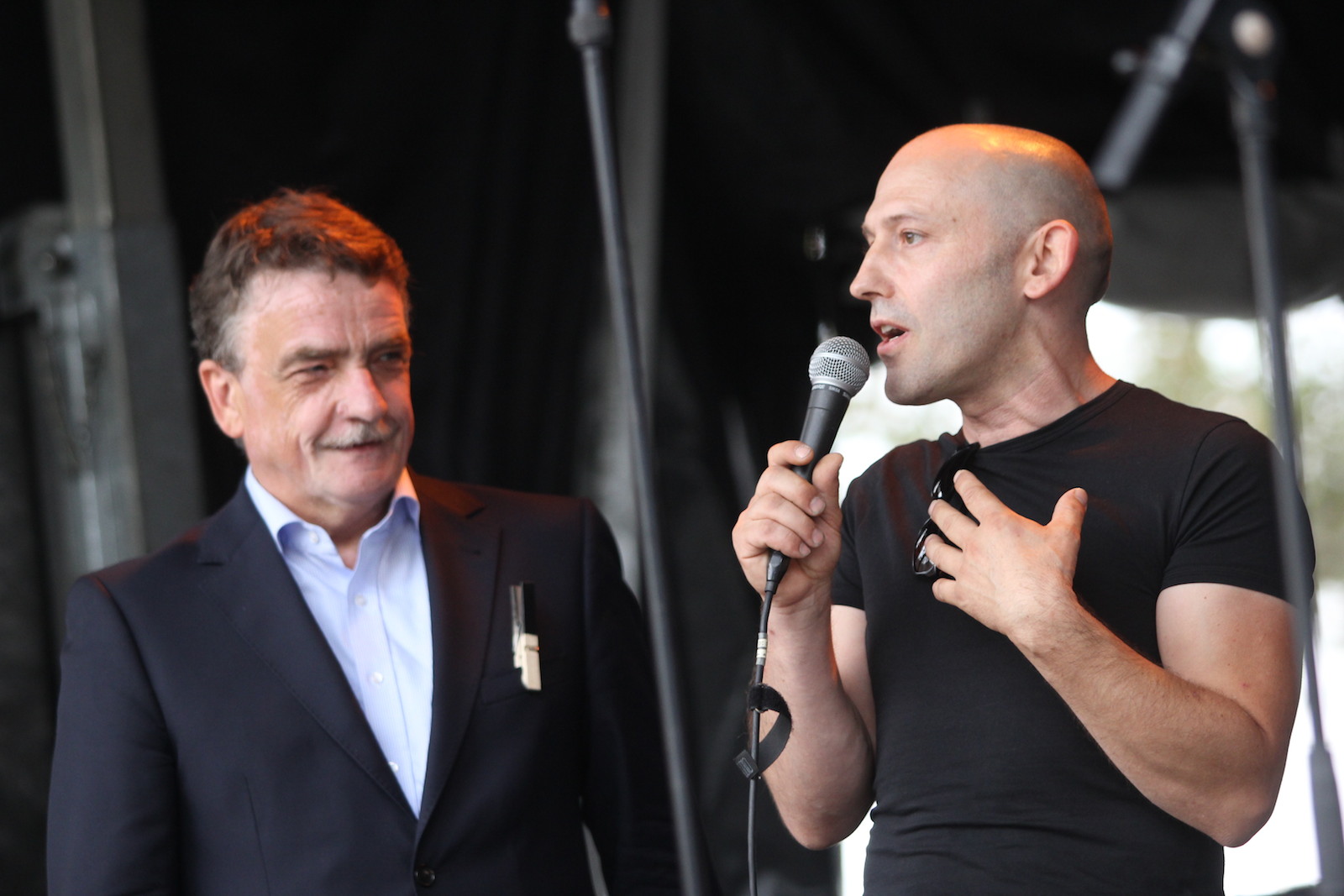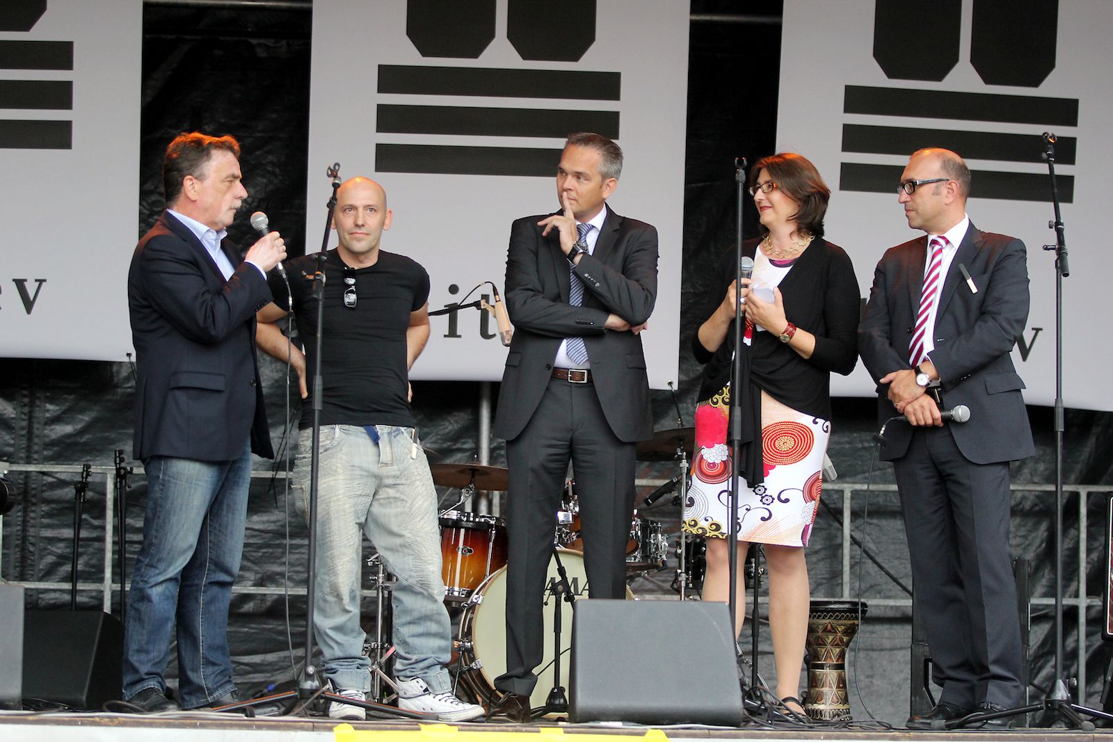 Statt Redenhintereinander gab es, nach einer Begrüßungsansprache durch den Oberbürgermeister Klaus Wehling, eine inhaltlich informative und zugleich fröhliche Gesprächsrunde. Mit: Michael Groschek, Minister für Bauen, Wohnen, Stadtentwicklung und Verkehr des Landes Nordrhein-Westfalen; Apostolos Tsalastras, Kulturdezernent und Kämmerer der Stadt Oberhausen; Regina Schmitz, NRW-Landesprojekt Initiative ergreifen; Alexander Muster, Schütz Energy Systems; Christoph Stark, kitev & Ateliers Stark.