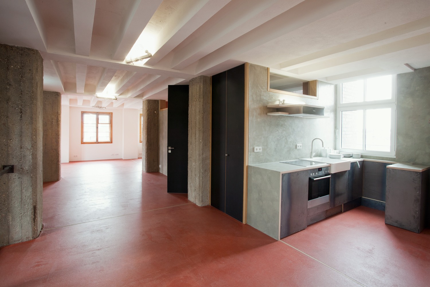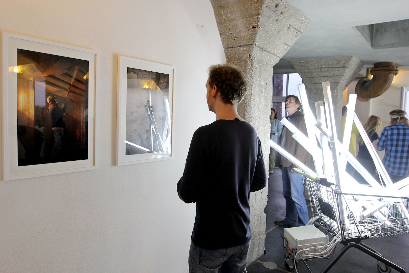 In die rote Etage zog die Galerie Zeitgenosse ein, kuratiert von Manuel Hase: mit Fotographien von Judith Rautenberg (München) und Tom-Oliver Schneider (Leibzig), Gemälden von Agnieszka Kalnik (Zabrze/Polen) und einer Installation von Michael Schmitt und Julius Schmiedel (Köln).