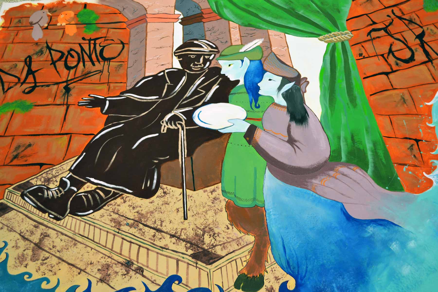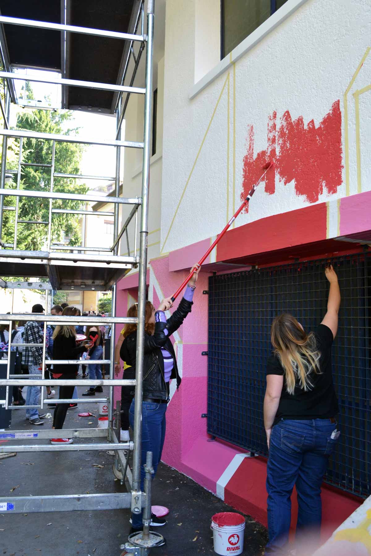 Außerdem konnten die Teilnehmer*innen, gemeinsam mit dem italienischen Künstler Joyce, die Fassade einer Schule verschönern.