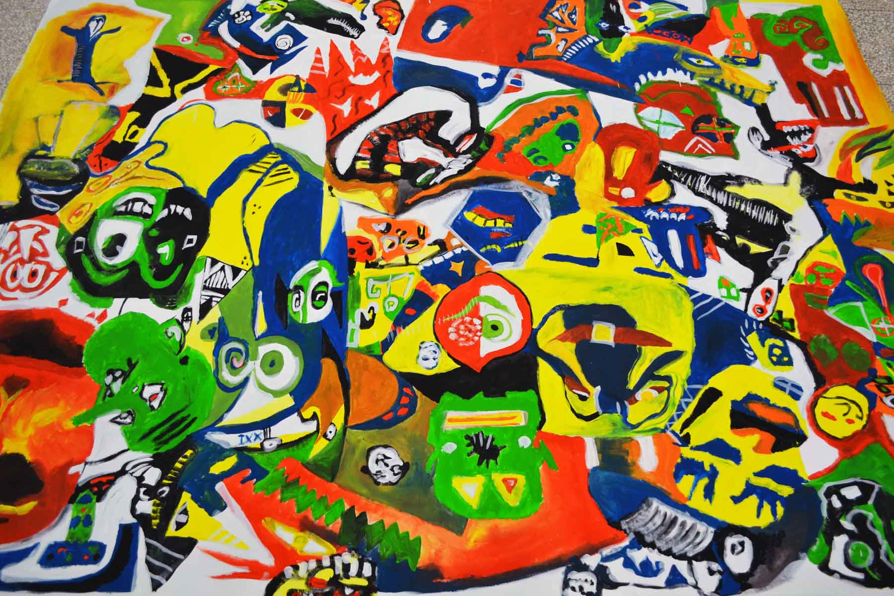 Ab dem dritten Tag ging es los mit dem praktischen Teil. Jede Gruppe gestalte eine Leinwand.